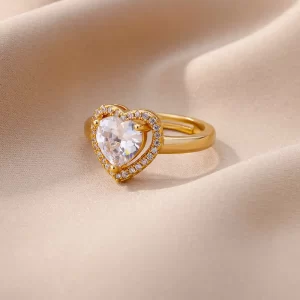 Deixe o amor brilhar com todo o seu esplendor com o Anel Amor Splendidus. Esta peça deslumbrante, feita de aço inoxidável de alta qualidade, exibe um coração central cintilante, cuidadosamente envolto por uma delicada coroa de pedras cravejadas. O design elegante e atemporal é realçado pelo brilho dourado, proporcionando um toque de sofisticação e romantismo a qualquer ocasião. Perfeito para celebrar momentos inesquecíveis, este anel é a escolha ideal para quem procura uma peça que simboliza o amor eterno com estilo e classe. Surpreenda-se com a durabilidade e a beleza incomparável de uma peça que transcende o tempo.
