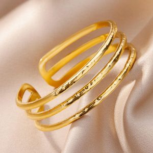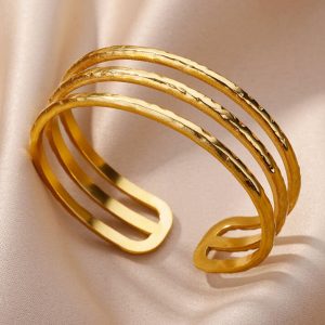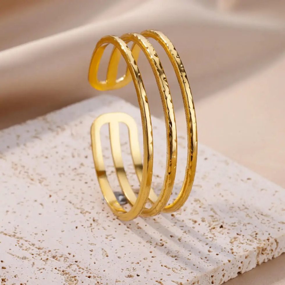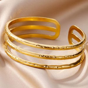 Descubra a elegância do equilíbrio com a Pulseira Harmonia, uma peça que personifica a união perfeita entre simplicidade e sofisticação. Produzida em aço inoxidável de alta qualidade com um acabamento dourado refinado, esta pulseira apresenta um design minimalista composto por três aros delicadamente texturizados. As linhas limpas e o formato aberto tornam esta peça versátil, ideal para complementar qualquer look com um toque de modernidade e elegância. Seja para um evento especial ou para elevar o seu estilo diário, a Pulseira Harmonia é a escolha certa para quem procura uma peça que simbolize equilíbrio e beleza atemporal. Adicione esta peça à sua coleção e permita-se brilhar com sua simplicidade encantadora e design sofisticado.